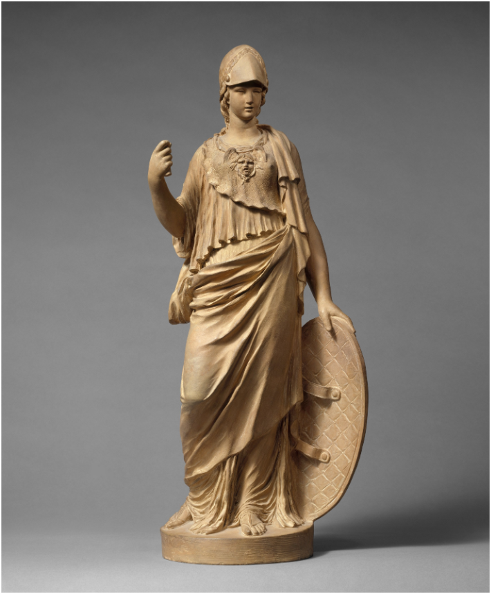 Meet Minerva. Roman goddess of wisdom, war, and craft and one of the spirits Delta Sigma Theta is built around. This 18th century sculpture shows her draped in a chiton, wearing an aegis with a Medusa head on her chest, shield in one hand, battle helmet pushed back like she's ready for whatever. This isn't mythology. This is who they were pledging allegiance to. (Clodion, Minerva, The Metropolitan Museum of Art)